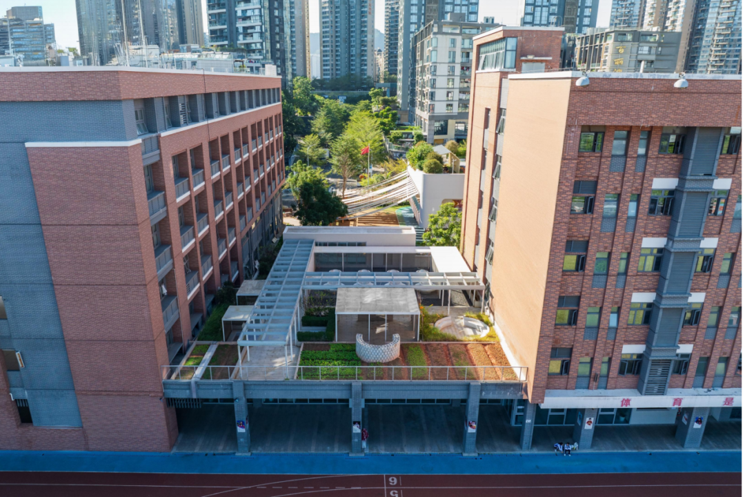 何健翔聚焦紅嶺實驗小學(xué)、紅嶺高中藝體中心與深圳美術(shù)學(xué)校三個項目,系統(tǒng)展示了高密度校園的解題思路。紅嶺實驗小學(xué)通過“雙復(fù)形”內(nèi)部庭院,在有限密度中編織出充滿活力的兒童社群空間;紅嶺高中藝體中心以“空間織造”策略回應(yīng)原始山體地形,實現(xiàn)建筑與自然肌理的有機縫合;深圳美術(shù)學(xué)校則以大膽的架空操場釋放地面空間,重構(gòu)了校園與城市的界面關(guān)系,為高密度城市中的校園建設(shè)提供了兼具在地性與前瞻性的解決方案。